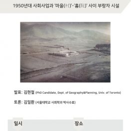 지난 8월 25일, 아시아도시사회센터의 제 19회 콜로키움은 발표자 김현철(토론토대학 지리학과 박사과정)의 <사랑, 지도, 헌신으로: 1950년대 사회사업과 ‘마을’-‘홈’ 사이 부랑자 시설>이라는 주제로 진행되었다.