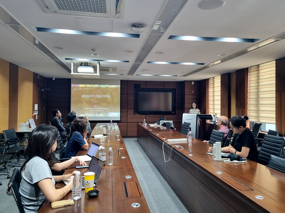 2025년 9월 12일(금)에 서울대학교 아시아연구소 아시아-아프리카센터는 제27회 서울대학교 아프리카 세미나를 개최하였다. 이번 세미나에서는 서울대학교 국제농업기술대학원의 박미선 교수를 초청하여 “서아프리카 산림과 카카오”를 주제로 강연 및 토론을 진행하였다. 사회는 아시아연구소 아시아-아프리카센터 선임연구원인 조준화 박사가 맡았다.