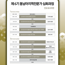서울대학교 아시아연구소 동남아센터와 KOTRA 아카데미는 인도네시아 진출을 준비하는 일반인을 대상으로 <제 6기 동남아지역전문가 심화과정- 인도네시아 편>을 공동 개최합니다. 각 분야별 인도네시아 최고전문가로 구성된 총 8회의 강의가 이틀에 걸쳐 제공됩니다. 인도네시아의 사회문화 및 정치경제의 현황에 대한 진지한 관심을 가진 분들의 많은 참가를 기대합니다.
