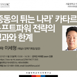 서아시아센터는 이세형 채널A 정책기획팀 팀장(전 동아일보 카이로특파원)을 모시고 최근 중동에서 작지만 가장 ‘튀는 나라’로 평가받는 카타르의 소프트파워 전략에 대해 분석하고자 한다. 외교, 교육, 미디어, 스포츠 등을 중심으로 카타르가 어떤 소프트파워 전략을 취하고 있는지, 이로 인한 성과와 한계가 무엇인지를 분석하고 전망하고자 한다.