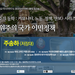 서울대학교 아시아연구소 중앙아시아센터에서는 ‘이주의 동학’ 워크숍을 시리즈로 기획했다. 먼저 이주의 실제적 양상을 보여주는 ‘귀환이주(한국 내 고려인 커뮤니티)’와 ‘노동이주(연해주로 간 북한 노동자)’를 다룬 후 ‘권위주의 국가(러시아, 카자흐스탄)의 이민 정책’과 ‘이주와 안보’와 같은 제도와 담론들에 대해 심층적으로 이해해 보는 장을 마련하였다.