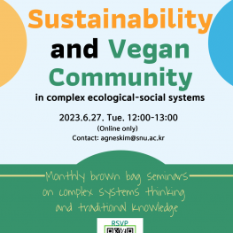 미래지구프로그램에서 진행하는 월례 브라운백세미나가 6월에는 지속가능성과 채식공동체를 주제로 열렸다. 이날 세미나는 미래지구프로그램의 김준 교수, 김고운 선임연구원 외에 지리학과 교환대학원생 Mireille Kim과 퀘백 공안 담당부처에서 근무하는 Karel Sauvageau 가 발표자로 나섰다. 발표자들은 이날의 발표를 통해 (1) 복잡계 사고에 대한 개념과 정의에 대한 설명(김준 교수) (2) 채식과 관련된 행성 경계(planetary boundary)(Karel Sauvageau), (3) 사회-경제적 토대( Mireille Kim), (4) 일상생활에서의 한계와 가능성(김고운 박사)에 대한 내용을 차근차근 하나의 스토리텔링처럼 전달하고자 했다. 이러한 접근 방법을 통해 첫째, 복잡계 사고의 적용에 대한 중요성을 다시 한 번 강조하고, 둘째, 어느 누구나 시스템적 사고를 통해 자신이 속한 시스템에서 즉각적인 실천을 위한 동기부여를 할 수 있는 바탕을 마련하고자 했다. 토론 시간에 참가자들은 복잡계 사고를 적용한다면 채식과 관련된 담론이 지나치게 이분법적이거나 잘잘못을 따지는 방식으로 흐르지 않고, 과학적으로 전체를 이해함과 동시에 개인 영역에서의 실천에도 동기부여가 될 수 있겠다고 입을 모았다. 발표자들은 세미나의 발표 내용을 보완하고 발전시켜 미래지구에서 주최하는 SUSTAINABILITY RESEARCH + INNOVATION 2023 Congress의 세션에서 한 번 더 발표할 계획을 밝혔다.