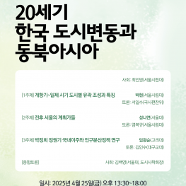 이번 도시사학회의 춘계학술대회는 서울대 아시아연구소 동북아시아센터와 공동 주최하며 <20세기 한국 도시변동과 동북아시아>를 테마로 삼는다. 동북아시아라는 역사적-지정학적 공간에서 식민지기와 포스트식민지기를 거쳐 온 한국 도시변동의 역사적 연속성과 변동의 국면별 양상의 특징을 살피되, 국내적 차원을 넘어서 동북아시아적 지평과 시각을 도입하려 시도한다.