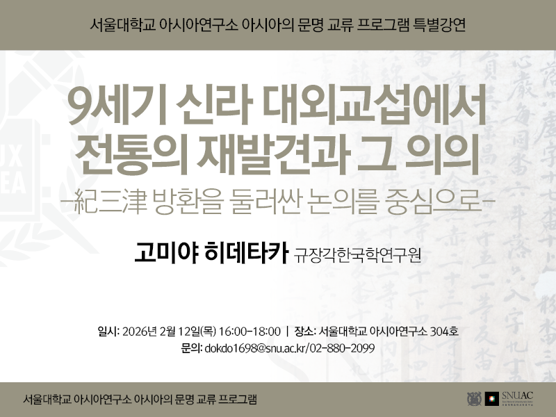 규장각한국학연구원의 고미야 히데타카 선생님께서 9세기 신라가 대외 교섭을 전개하는 과정에서 전통을 재발견한 방식과 그 의미를 살펴본다.