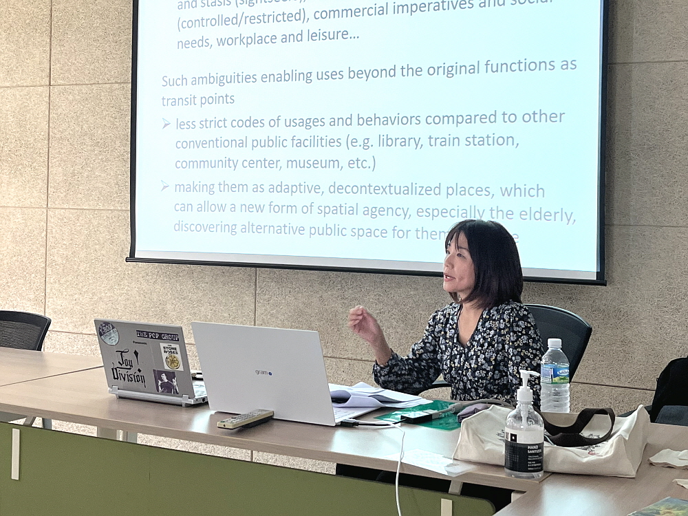 카오코 교수의 발표 주제는 고령화 시대에 변화하는 공공공간의 성격을 한국의 인천국제공항을 사례로 관찰하는 것이었다. 최근 서울 탑골공원과 같은 도심 속 고령자들이 주로 모이는 상징적 공간이 통제되면서 해체되기 시작한 공공성이, 인천공항이라는 독특한 장소에서 대체되고 있다는 점을 지적하였다. 이는 기후위기로부터 안전한 공간, 무료 지하철 인프라, 혐로(嫌老) 정서를 피할 수 있는 ‘무관심한 영역’과 같은 특징을 통해 공공공간의 새로운 상상을 가능하게 하였다. 카오코 교수는 이러한 변화를 크게 물리적 요소(무장애 공간, 남는 공간에서의 비공식적 허용, 유연한 행동 규범)와 사회적 요소(건강을 위한 감시 시스템, 반노년 정서)를 통해 분석하였으며, 특히 타국가 대비 인천공항이 가진 독특한 개방성과 익명성에 주목할 것을 제안하였다.
